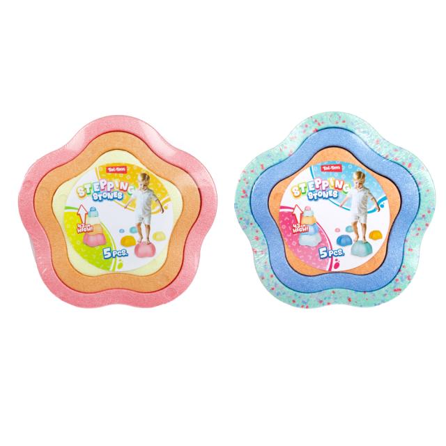 Set van vijf fraai vormgegeven lichtgewicht blokken die jouw kind uitdagen en trainen in het bewaren van hun balans. De stevige stapstenen passen naadloos in elkaar waardoor ze samen niet veel plek innemen. Los van elkaar kan er steeds weer ander parcours worden gevormd waarover je kleuter van steen naar steen kan lopen, zonder de grond te raken. Is dit nog iets te moeilijk voor jouw kindje dan is een toren bouwen van de pastelkleurige stapelstenen van piepschuim ook een heel leuk spel dat de hand-oogcoördinatie traint. Een veelzijdig en superleuk item dat geschikt is voor verschillende leeftijden.